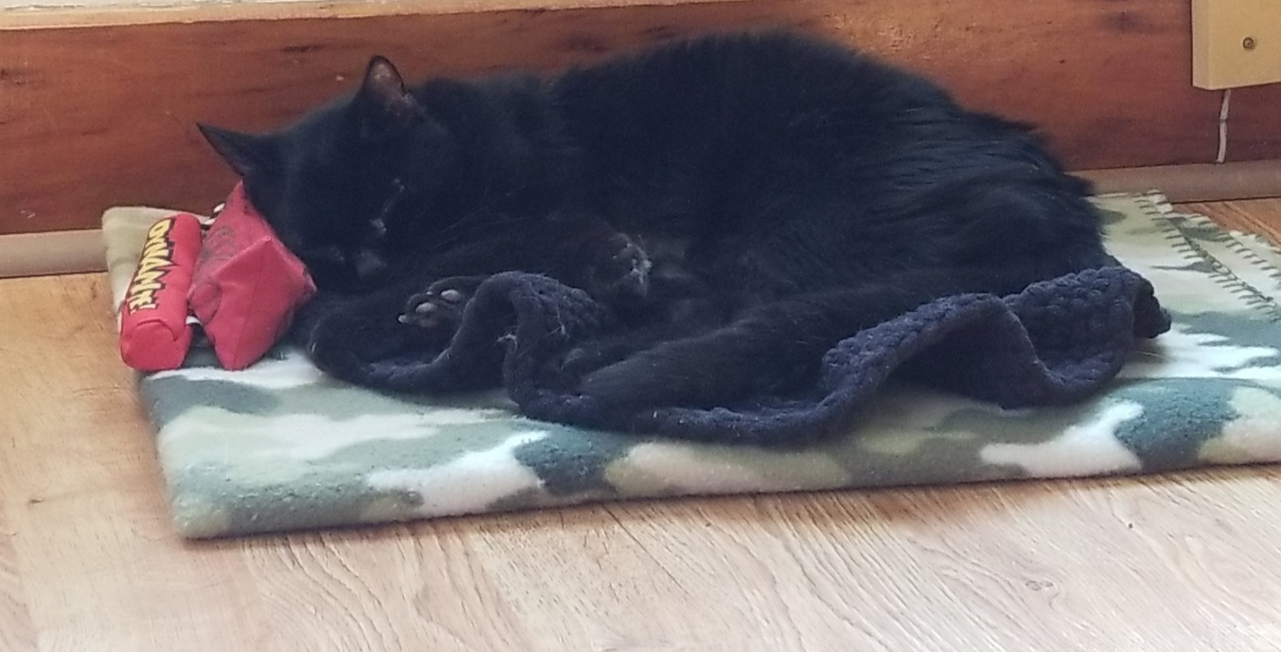 Somehow, I managed to pack him up, pay for his visit, and drove him home before I broke down. Off and on for the rest of the afternoon, I sobbed my heart out. This cat may have only been in my life for little more than two years, yet he has somehow wormed his way into my heart and has me wrapped around his pretty black paw.